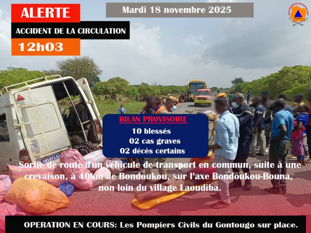 Accident sur l’axe Bondoukou-Bouna: 2 décès dans une sortie de route Lire la suite »